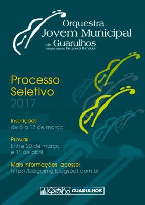 A Orquestra Jovem Municipal de Guarulhos (OJMG) tem uma ótima notícia para aqueles que sempre sonharam em fazer parte de seu corpo artístico. Entre os dias 6 e 17 de março, jovens instrumentistas de todos os naipes da orquestra podem se inscrever para o Processo Seletivo 2017. Além de servir como modo de reavaliação dos músicos que já fazem parte da OJMG, a iniciativa tem como objetivo atender à demanda por novos músicos, fomentando a participação de jovens a partir dos 14 anos.