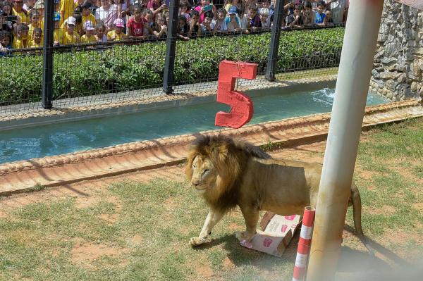 Quem passeava pelo local e parou para participar da comemoração assistiu a uma pequena apresentação sobre os hábitos, a alimentação, a saúde e a origem dos leões que moram no parque. A plateia colaborou fazendo silêncio para não assustar o animal, que encantou a todos com sua beleza enquanto brincava com seus presentes.